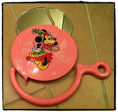 很久沒有作惡夢了,昨天晚上居然作了一個我自己也記不得的惡夢,可能最近太多雜事混在一起了,通常有事煩,有壓力或雜事一堆時惡夢就會在半夜跟我打招呼>< 就在早上起床還在愰神驚嚇中走進浴室準備上廁所,要拿個洗手台上的東西手一揮不小心把我的米妮鏡揮出桌面~鏗一聲,鏡子掉在地上,隨即就是我的尖叫聲~啊!!!!!!!!!!!!!!!!P先生在客廳整個被我嚇一跳衝進浴室以為我發生什麼事???唉~對啊,不過是個鏡子,不過是個陪我整整20年的鏡子啊!!!!!!!!!!!!!!!!!看著碎成兩半的鏡面及分離的主體及把手,我這才驚醒~~還碎的真不碎,鏡子只裂成兩半,那可愛的米妮也還完完整整的對我微笑,可是我真的笑不出來啊!!!!要是真那麼容易摔破,20年中也太多機會可以裂了吧?即便因為跟著我搬家又被移來移去的有一些裂痕,可是它還是每天陪伴著我啊!!沒想到居然在這一天要徹底地跟它說再見><
