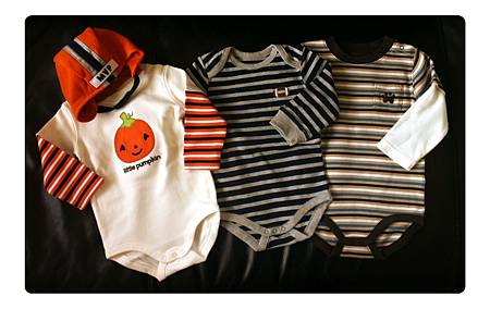 等P先生剪頭髮回來我們又去了另一家童裝店Gymboree,剛好非常多打折的商品(是我剛好選對時間?還是童裝一天到晚都有折扣???以前都不會去注意這個啊)本來也是沒想要買,但最後還是選了三件全身式最基本款的,想說不管怎樣一定有機會穿到吧???最好笑的是還有一件Halloween的,明明今年萬聖節都還沒到,硬是要買一件明年可以穿的,然後又硬要配上一顆橘色football的安全帽,實在有點好笑!!!!Anyway….