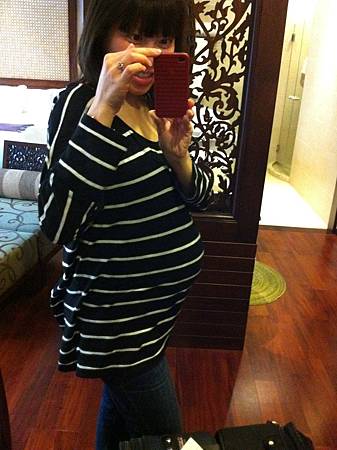穿上懷孕前較合身的T-shirt有快把衣服撐破的感覺~~
