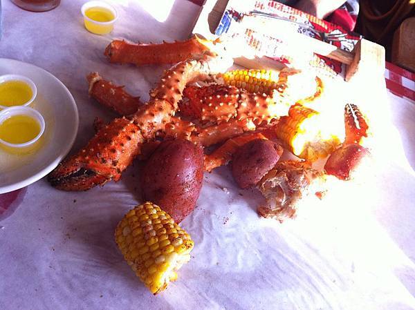 帶著小普rem吃蟹腳,說真的...很有挑戰性!希望我在敲的時候不要醒來,手沒空啊- at The Crab Pot Bellevue