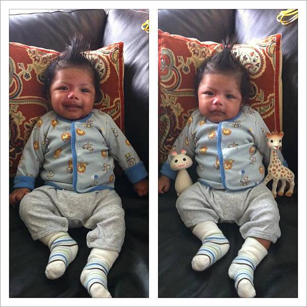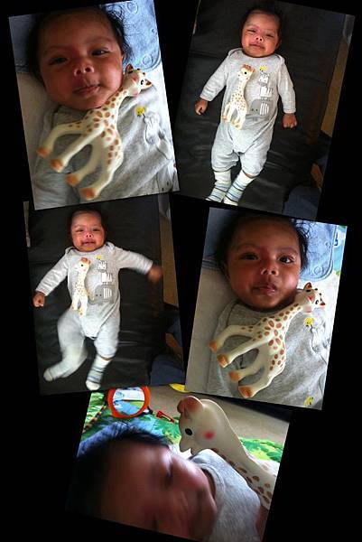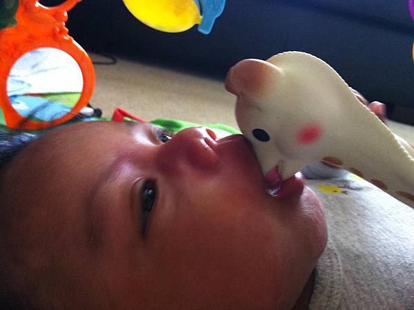 最近小普rem的新招是喜歡把手放進嘴巴,是快長牙了嗎?看來該是長頸鹿跟蘑菇頭出動的時候了??!!