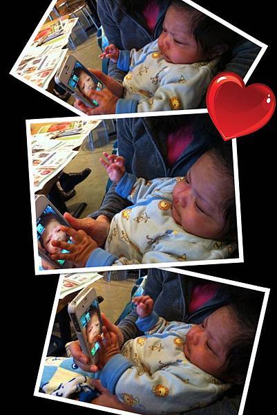 哇!我會滑iphone耶.....這一天我100天大 :-) 還有,螢幕上的人好像是我耶...