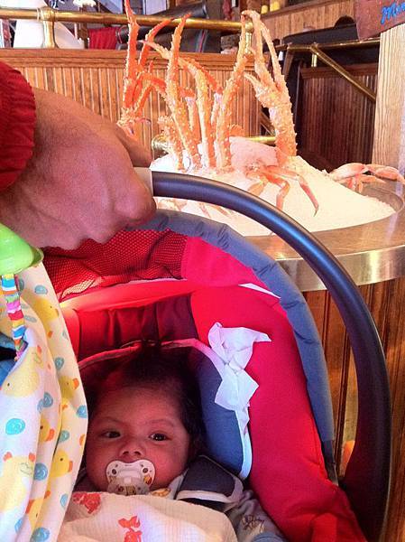 我對蟹腳無動於衷....還是奶嘴好吃:D (這蟹腳跟我的頭髮一樣刺耶...)