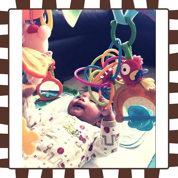 Playtime: 我今天穿Anand叔叔送我的新衣服 :) 最近我對各式各樣不同的玩具及顏色越來越好奇.....不過我說馬麻啊,你也在我的gym裡面掛太多東西了吧?!!感覺是你自己比較想玩耶XD
