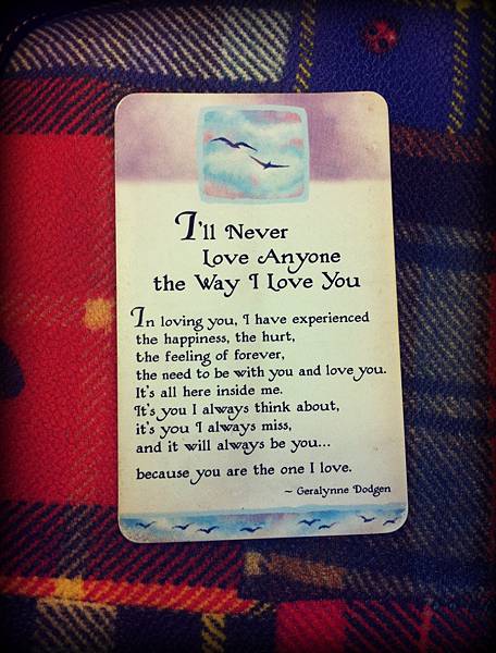 (PHOTO: 2008年在台灣公證結婚時我送給P的一張小卡~前些日子被我發現他還留在皮夾中!!如果是滿讓人會心一笑,但也有可能是一直沒空拿出來~哈哈哈!)